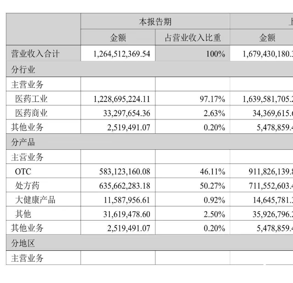 从业务贡献量来看,目前营业收入的主营业务收入构成主要为处方药、OTC板块,以2025年半年报为例,上述两大业务在总营业收入的占比达到96%以上。而大健康产品占营业收入比重仅为0.92%。